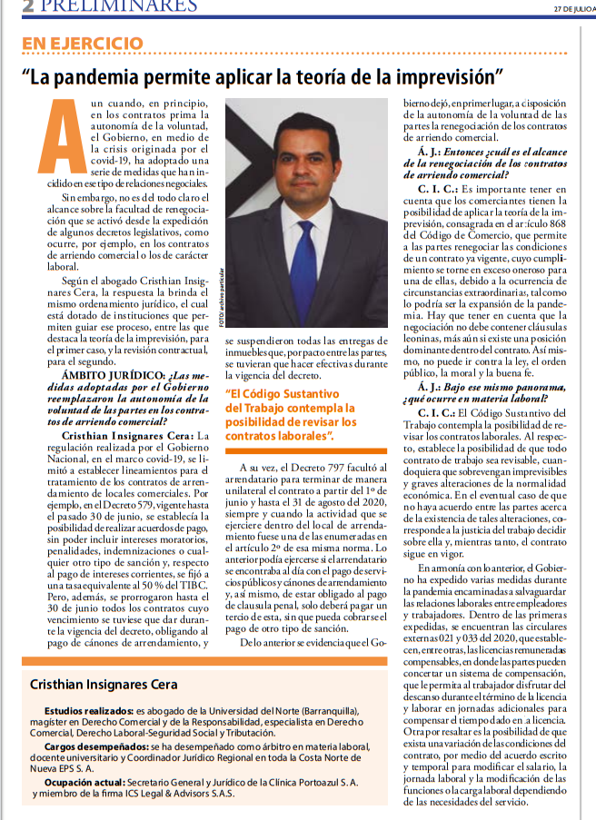 La firma ICS LEGAL & ADVISORS pone de presente a nuestros clientes y al publico en general, el siguiente artículo de opinión realizado por uno de nuestros miembros de la…